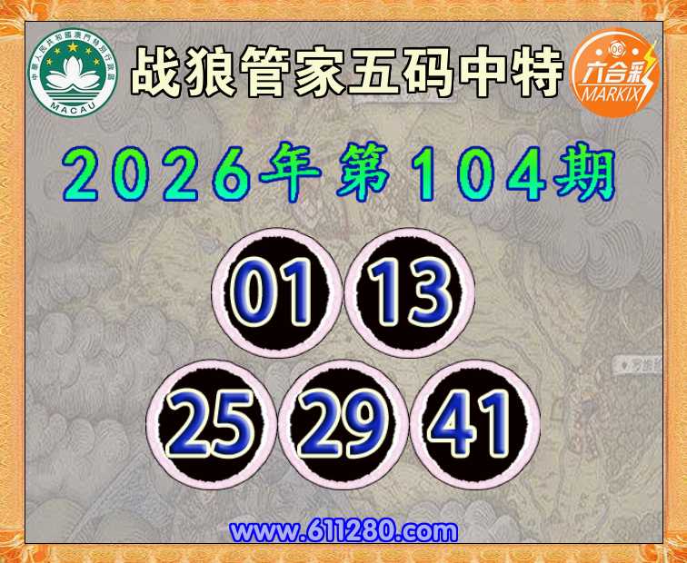 104期: 🧶《战狼管家》 🧶五码中特🧶【01.13.25.29.41】开:00准