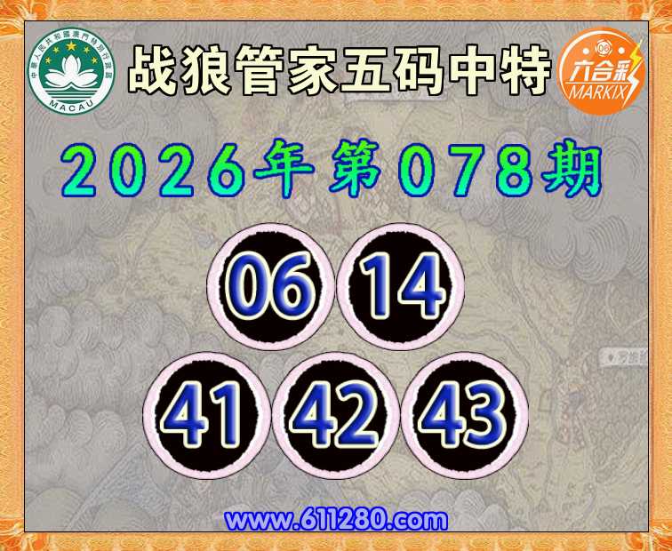 078期: 🧶《战狼管家》 🧶五码中特🧶【06.14.41.42.43】开:46