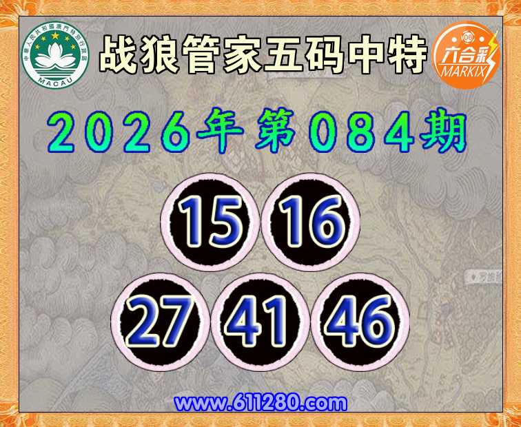 084期: 🧶《战狼管家》 🧶五码中特🧶【15.16.27.41.46】开:16