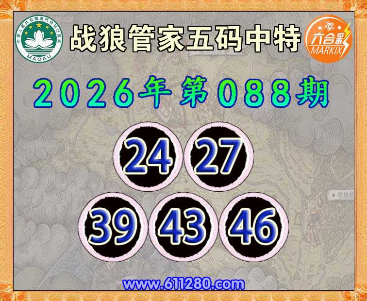 088期: 🧶《战狼管家》 🧶五码中特🧶【24.27.39.43.46】开:27