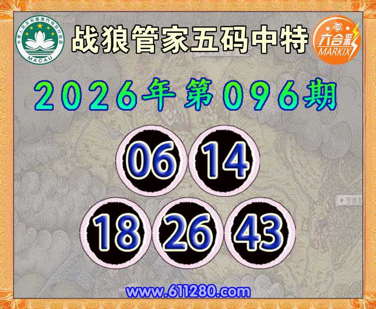 096期: 🧶《战狼管家》 🧶五码中特🧶【06.14.18.26.43】开:43