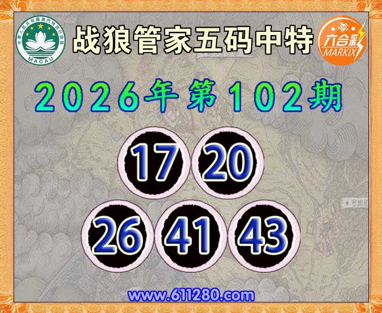 102期: 🧶《战狼管家》 🧶五码中特🧶【17.20.26.41.43】开:20
