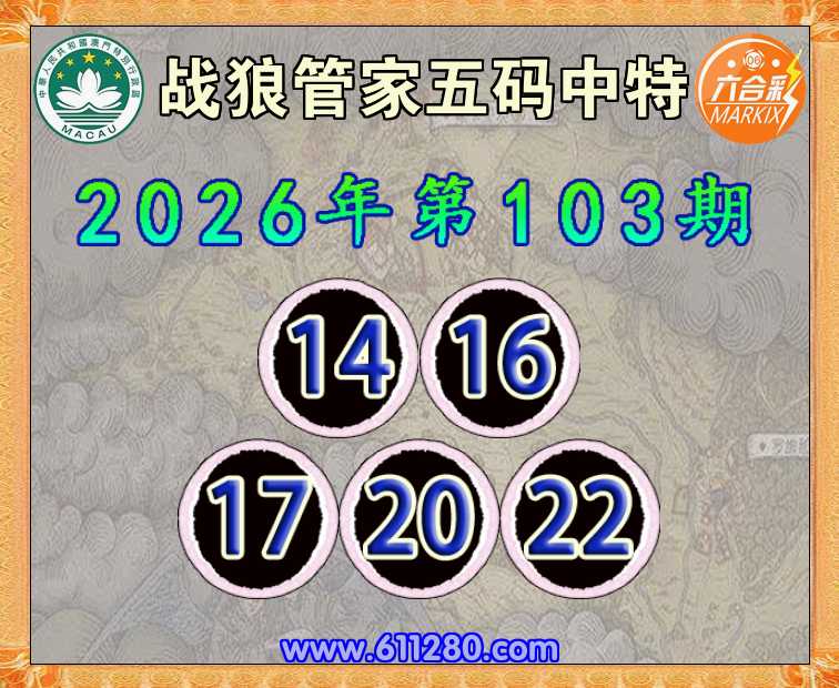 103期: 🧶《战狼管家》 🧶五码中特🧶【14.16.17.20.22】开:06