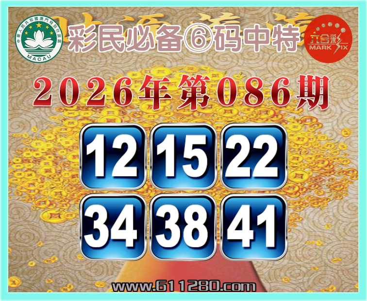 086期:『彩民必备』 🏅⑥码中特🏅【12.15.22.34.38.41】开:12