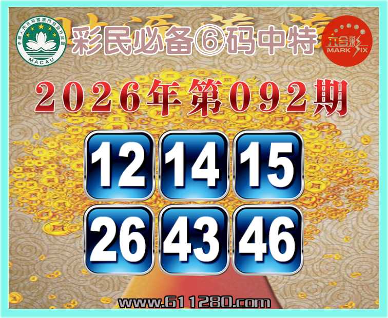 092期:『彩民必备』 🏅⑥码中特🏅【12.14.15.26.43.46】开:06