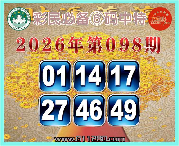 098期:『彩民必备』 🏅⑥码中特🏅【01.14.17.27.46.49】开:17
