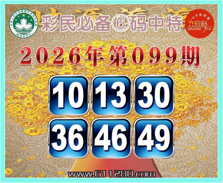 099期:『彩民必备』 🏅⑥码中特🏅【10.13.30.36.46.49】开:12