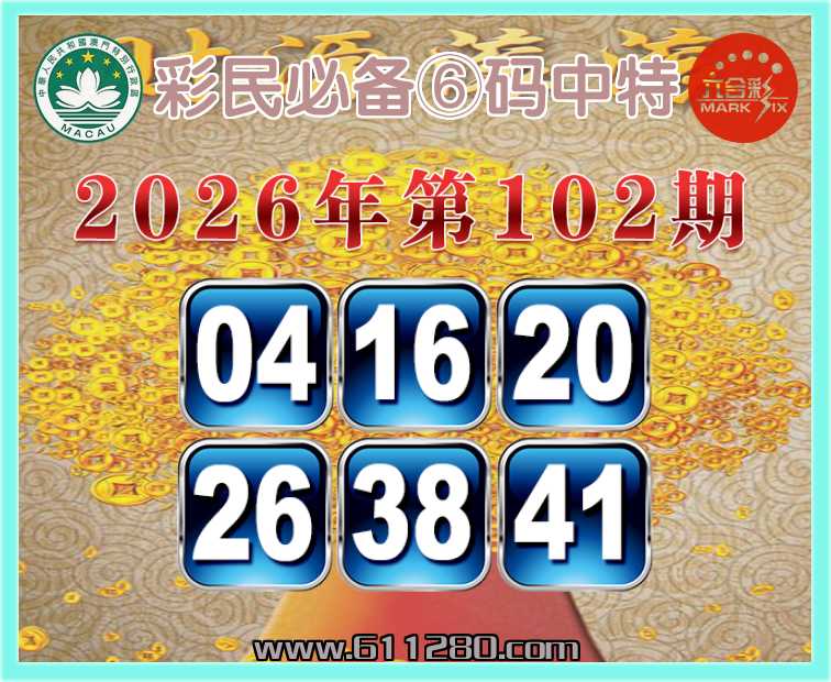 102期:『彩民必备』 🏅⑥码中特🏅【04.16.20.26.38.41】开:20