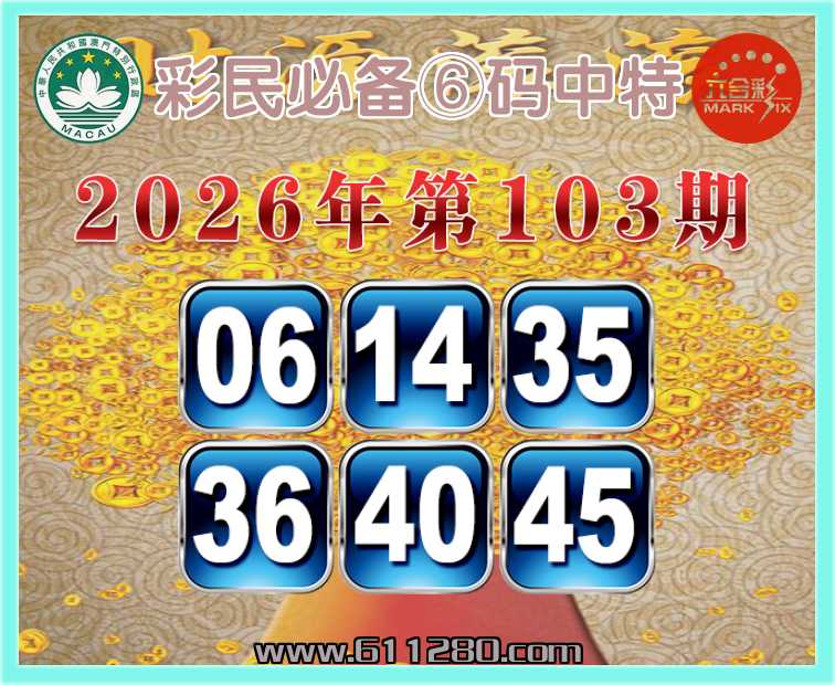 103期:『彩民必备』 🏅⑥码中特🏅【06.14.35.36.40.45】开:06