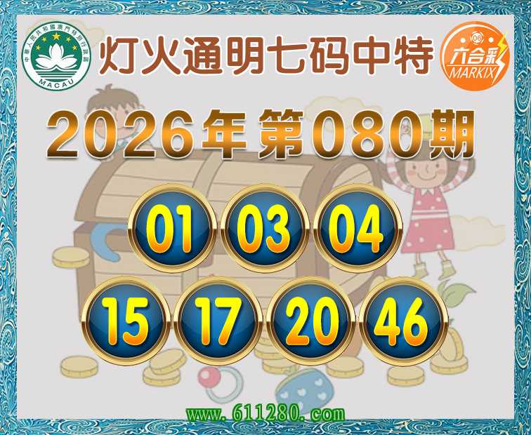 080期:【灯火通明】 🍖七码中特🍖【01.03.04.15.17.20.46】开:03