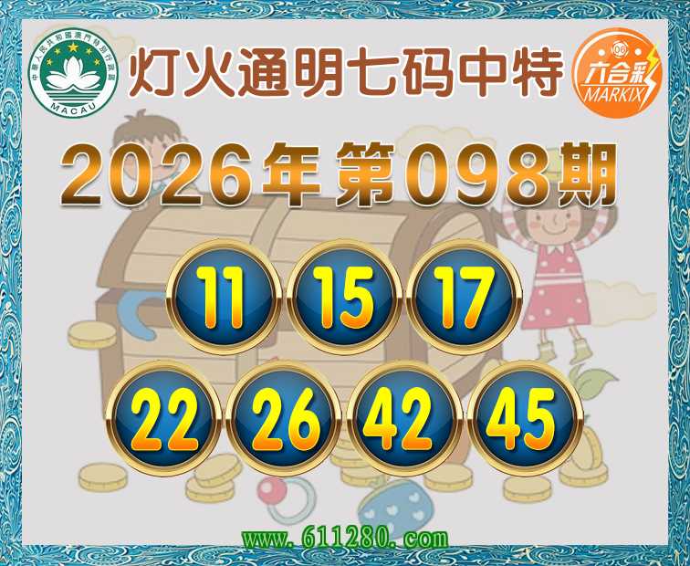 098期:【灯火通明】 🍖七码中特🍖【11.15.17.22.26.42.45】开:17