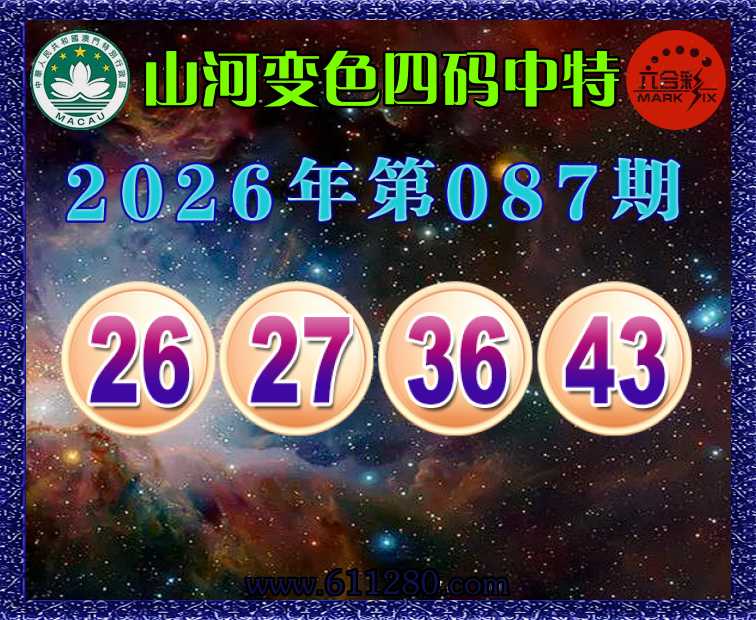087期:『山河变色』 🎪四码中特🎪【26.27.36.43】开:26