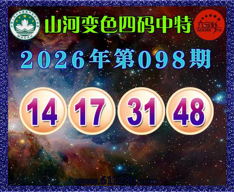 098期:『山河变色』 🎪四码中特🎪【14.17.31.48】开:17